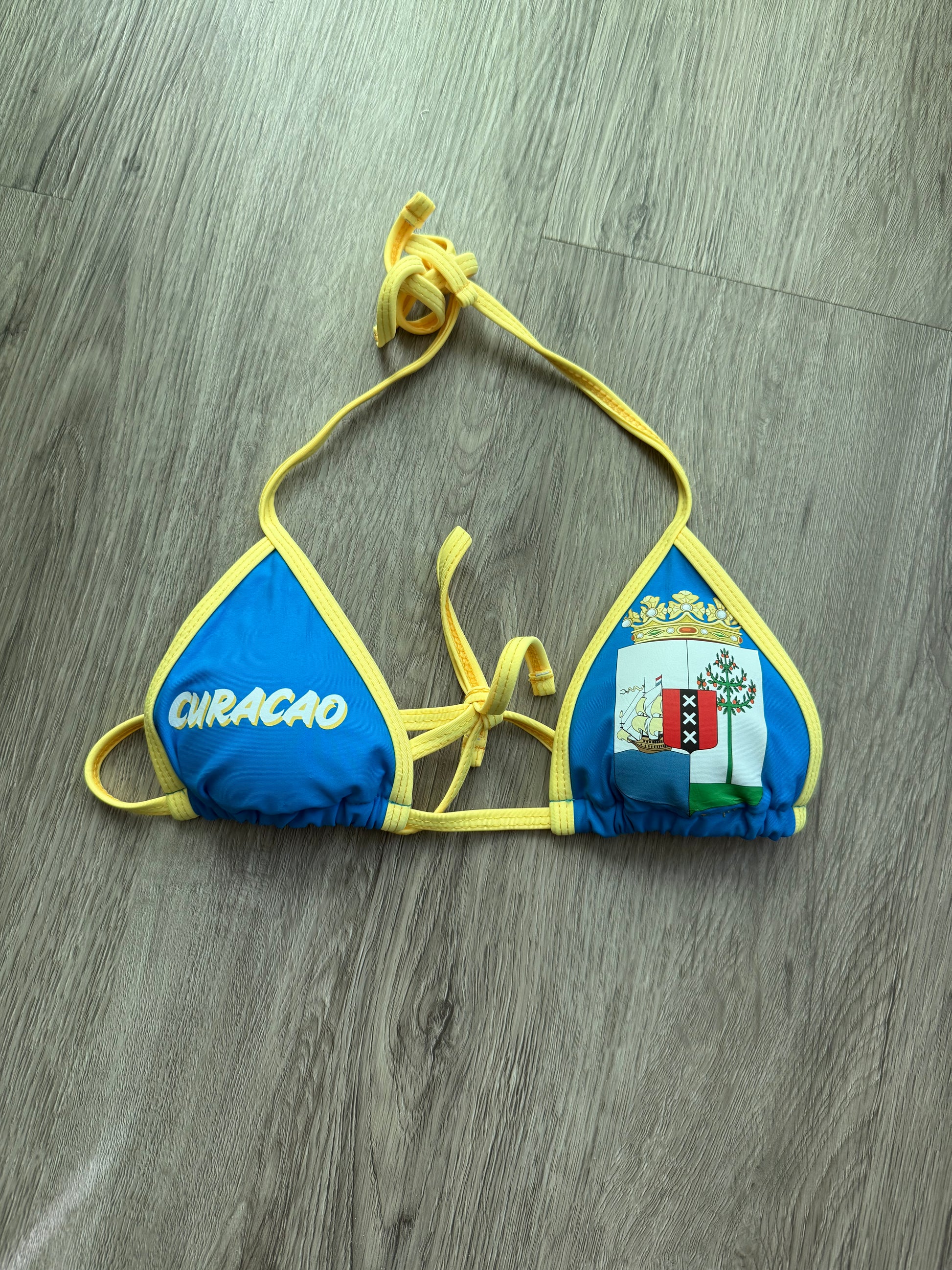 Proudly represent Curacao with the 599 Area Codes Bikini Top! Its vibrant colors and Coat of Arms design will turn heads wherever you go. Made with premium materials, this top offers an adjustable fit for maximum comfort at the beach or pool. Complete the look with the 599 bottoms.